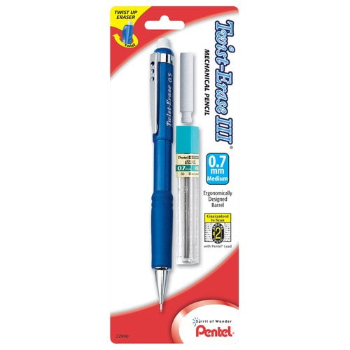 Pentel Twist-Erase III Mechanical Pencil, (0.7mm) Lead and Eraser Refill, 1-Pk