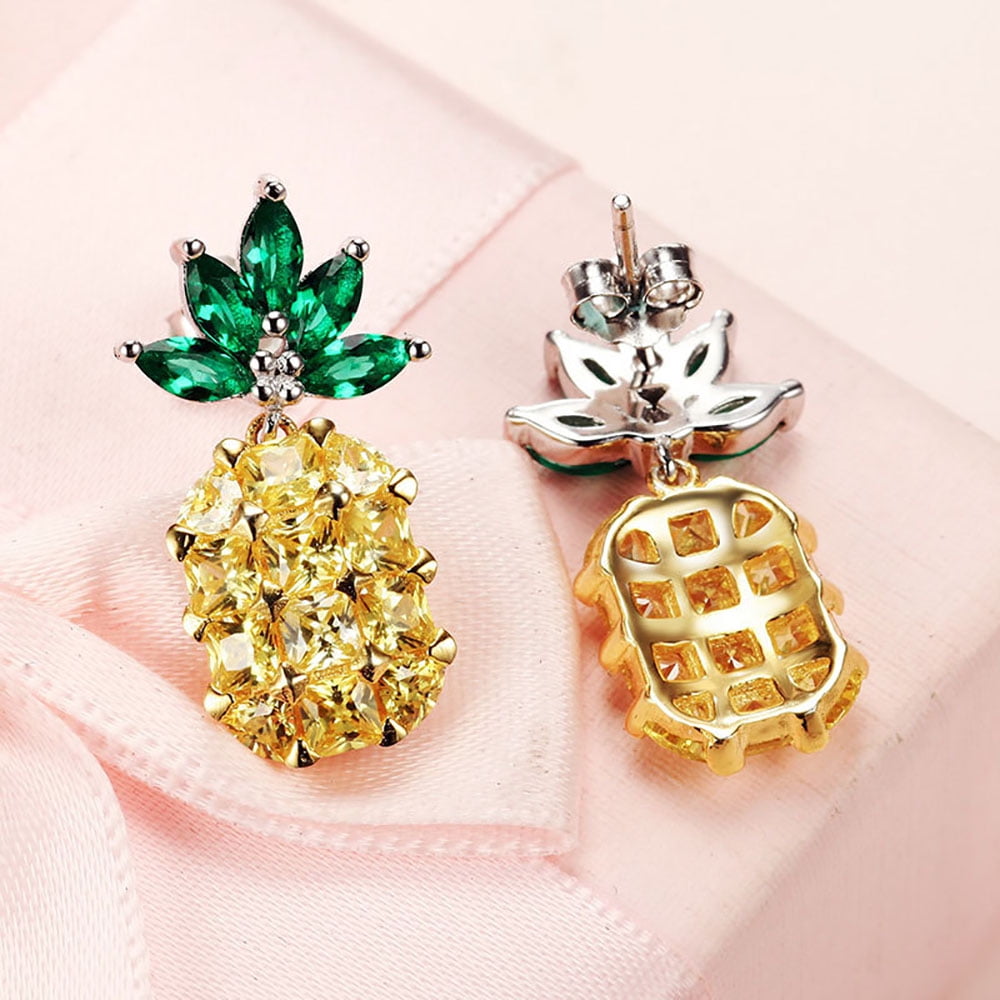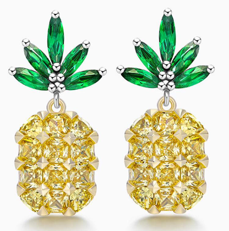 Pineapple Yellow and Green CZ Earrings from the Ginger Lyne Collection – Stone Color: Green Yellow Plating: Platinum and Yellow Gold over Copper Size:20cmx10cm