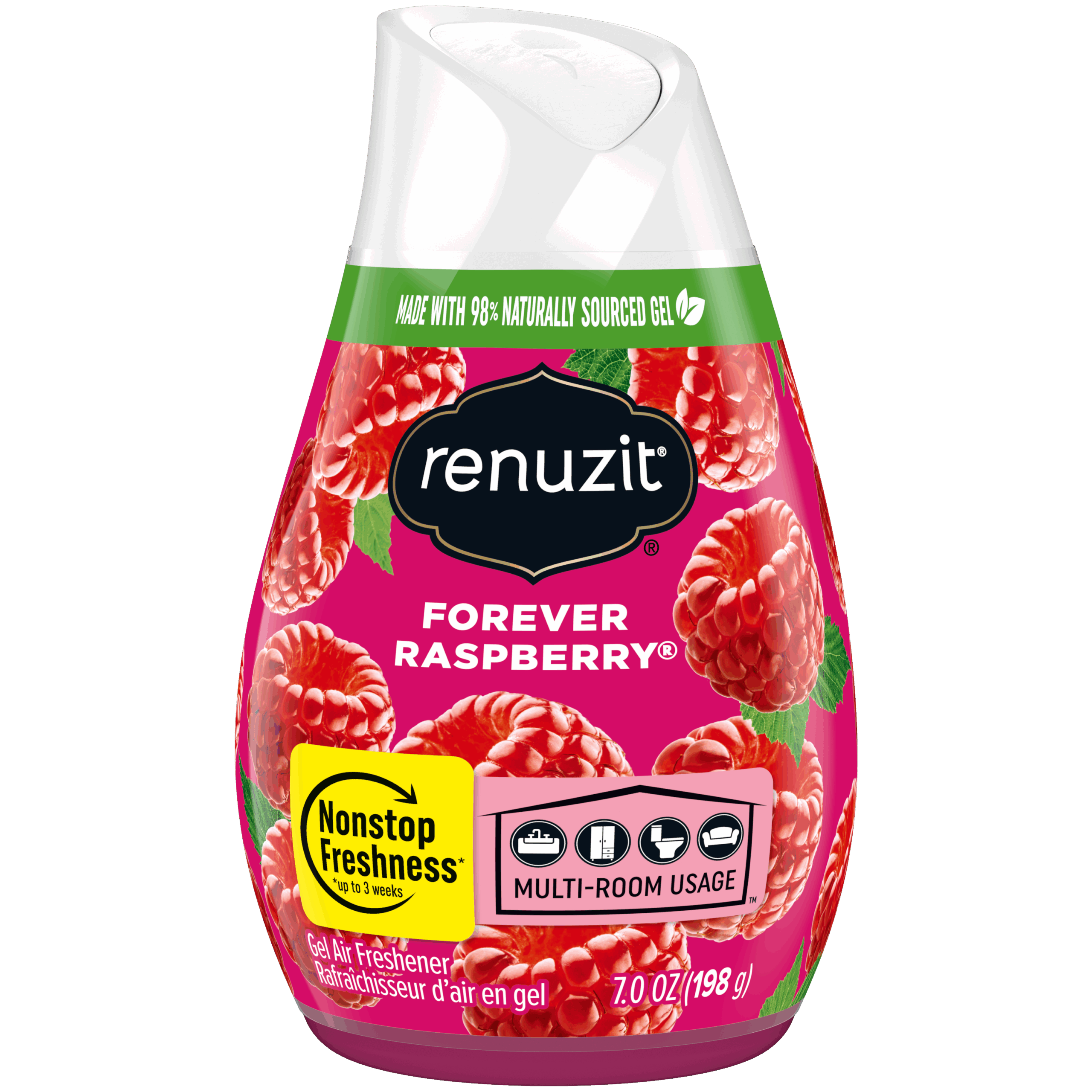 Renuzit Adjustable Solid Gel Air Freshener Cone, Forever Raspberry, Nonstop Freshness, 7 Ounces, 1 Cone