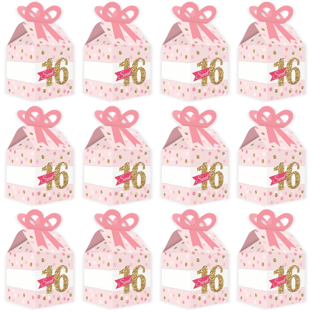 - CUTE GIFT BOXES: This small, closed favor box can be filled with homemade treats (fun cupcake box), party trinkets, or thank you gifts. At the party, have each guest fill their Sweet 16 bow box with snacks from a candy buffet or use as a party loot box. Guests will have fun guessing what surprise each favor gift box contains.