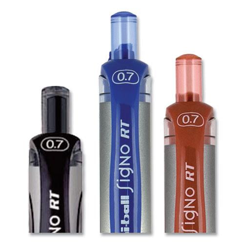 Create clear, crisp lines with Signo Retractable Gel Pens from Uni-ball featuring a 0.7 mm medium point with a stainless steel tip that resists bending and breaking. Even-flowing, pigment-based gel ink delivers a smooth writing experience with long-lasting, vibrant color. Use these gel stick pens for everyday writing tasks, list making, note taking and check signing. Innovative uni Super Ink technology effectively entraps the gel ink into the paper, producing fraud, fade and water-resistant documents. The 0.7 mm medium point produces bold and vibrant gel ink color every time. A soft rubber grip helps you continue writing without fatigue while maintaining precision and detail throughout your tasks, while a translucent ink window indicates the level of gel ink remaining, so you don’t run out unexpectedly. These retractable gel click pens boast a sleek, semi-translucent barrel with a rubber grip for exceptional writing comfort.