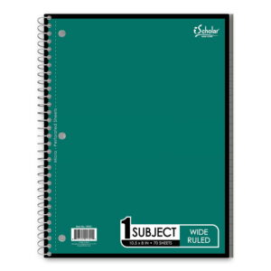 iScholar 1 Subject Notebook, 10.5′ x 8′, Wide Rule, 70 Sheets, Green (78101-GR)