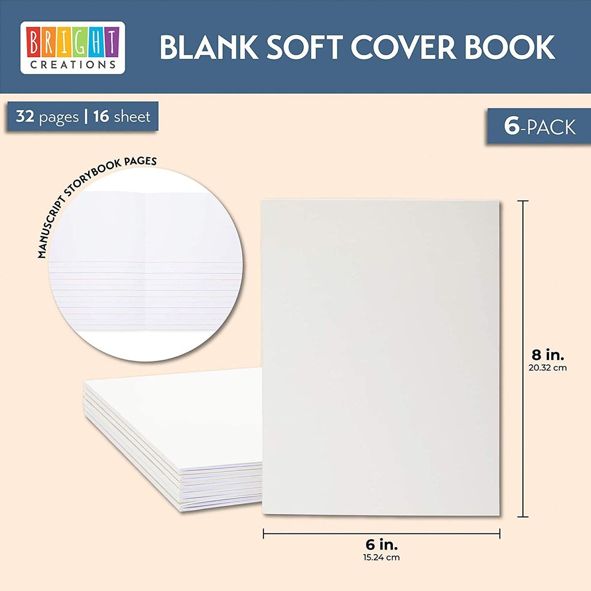6 Pack Blank Drawing Writing Story Book for Kids, 16 Sheets Portrait Notebook, 6 x 8 in
