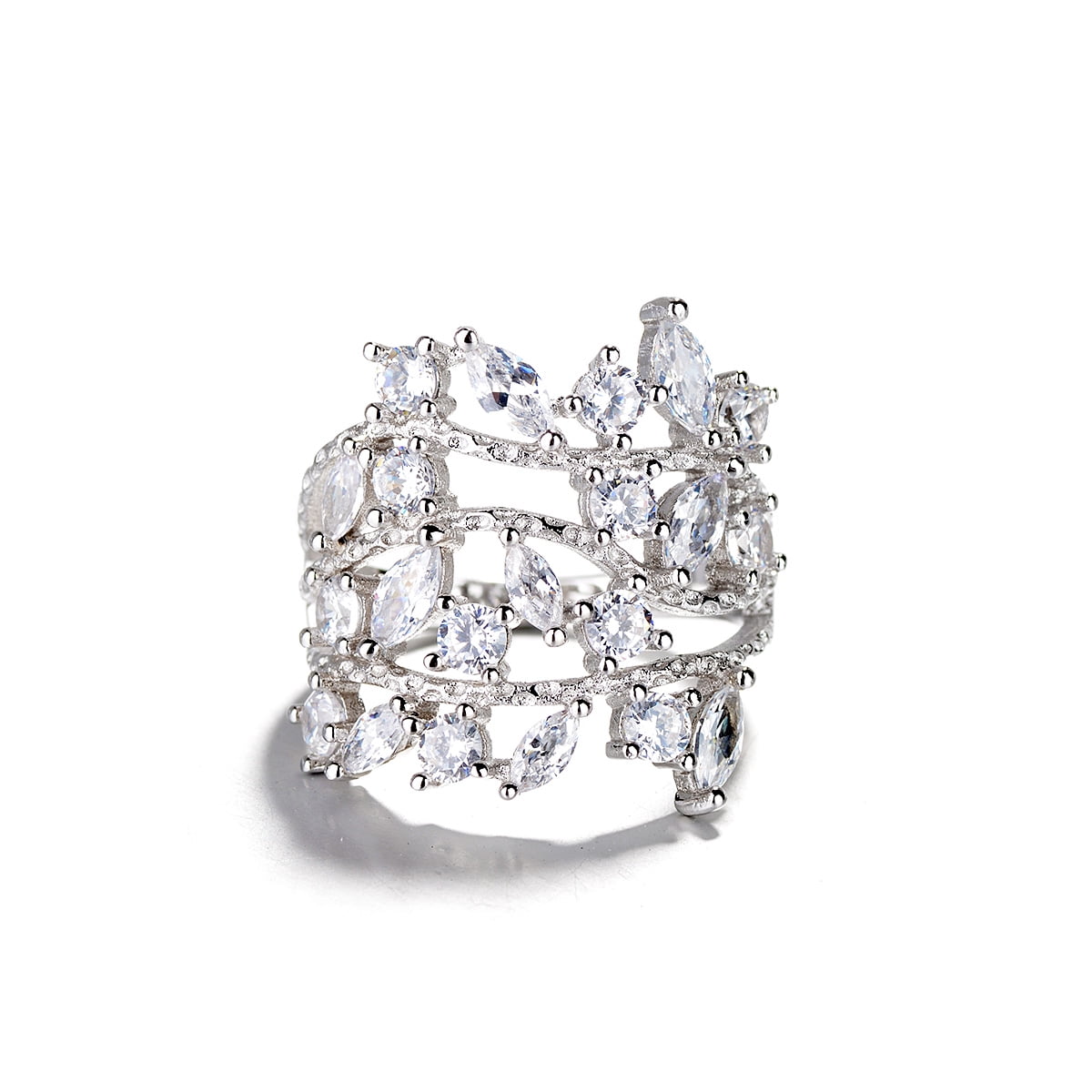 Sterling Silver Crystal Leaf Ring Made With Swarovski Elements