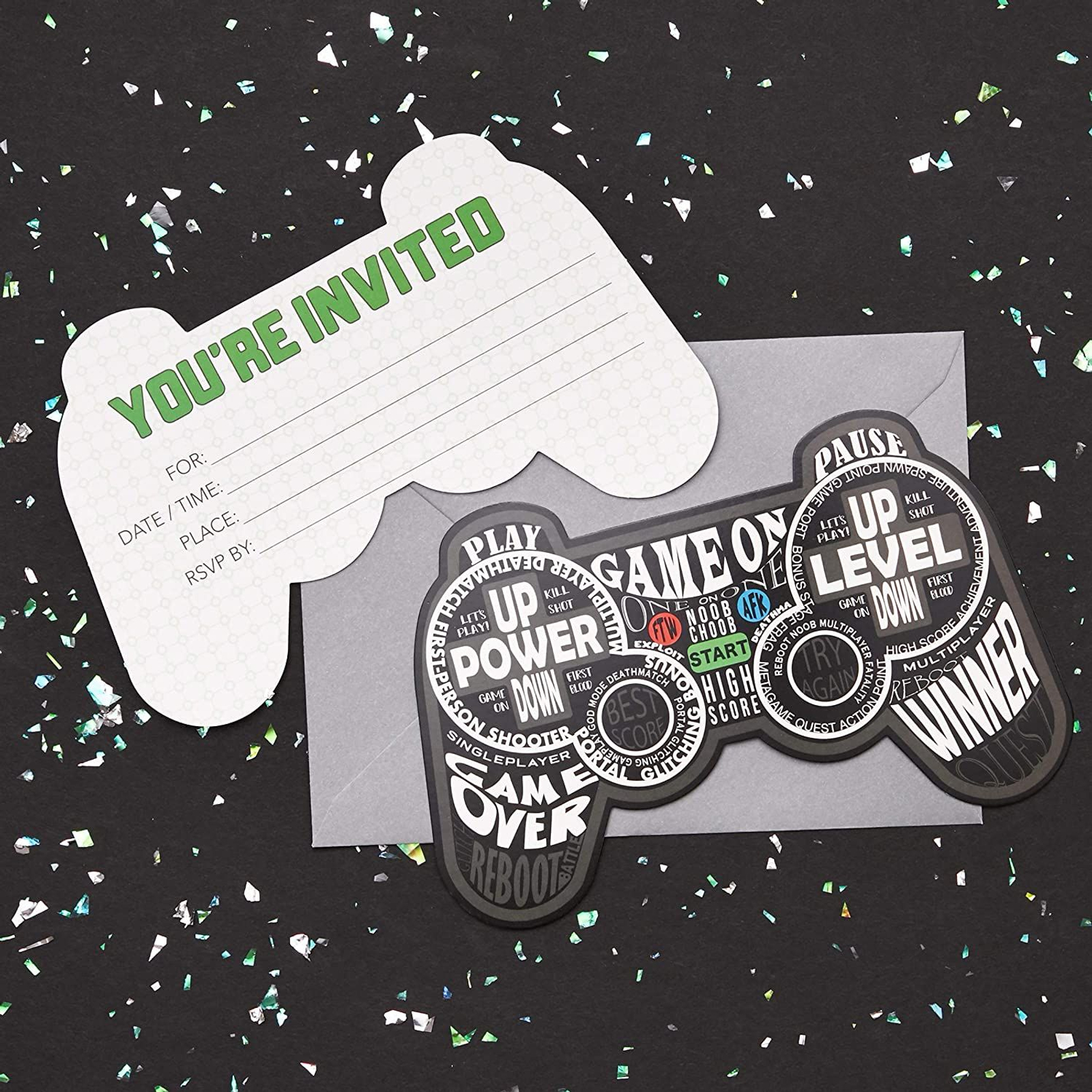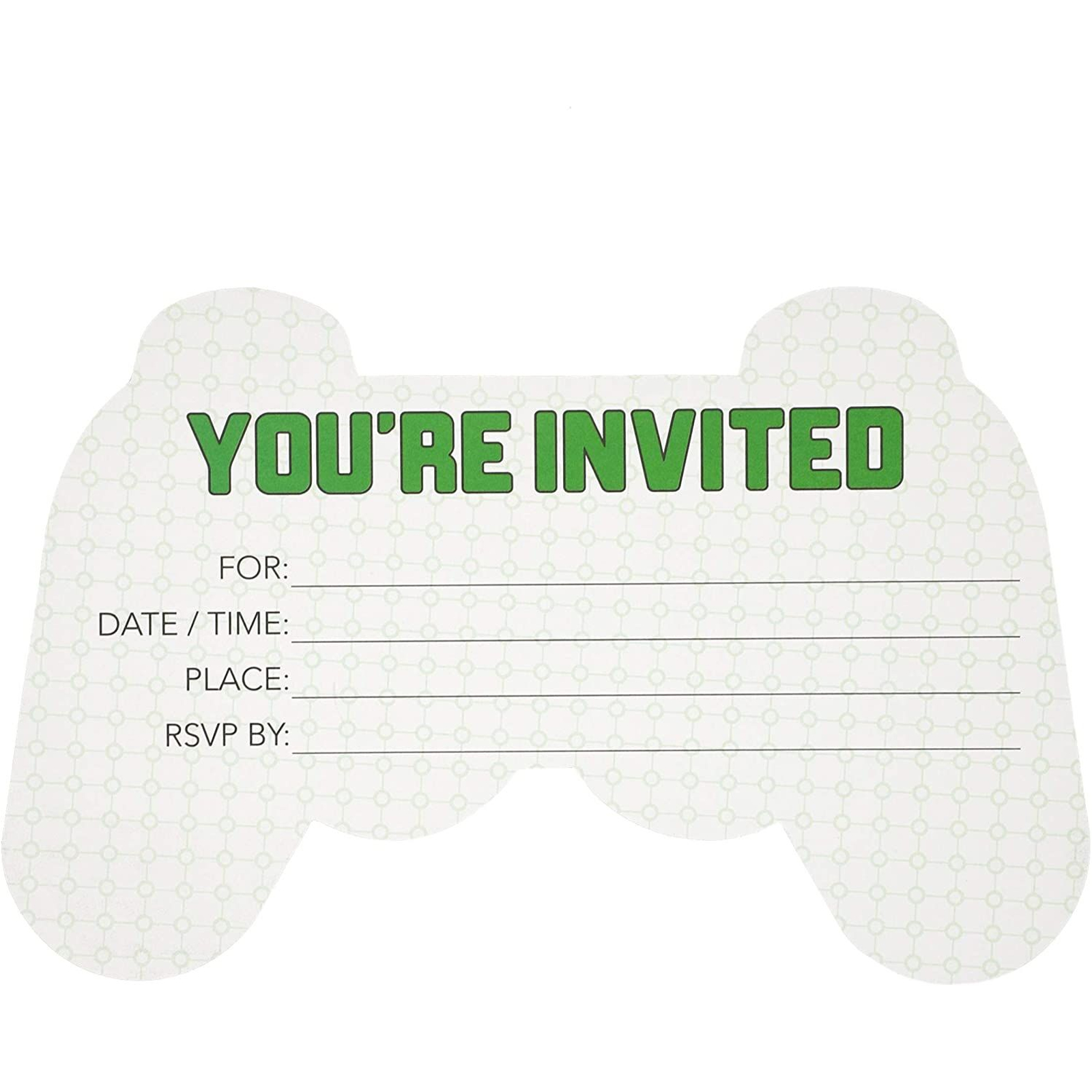 Includes 24 video game controller invitations and envelopes. Ideal for video game-themed birthday parties. Ample space to fill in information about who it’s for, date/time, place, and RSVP. Material made of 300 gsm cardstock with 200 gsm envelopes. Dimensions measure 5 x 7 inches.