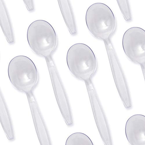 Avant Grub 5′ Wide Bowl Clear Plastic Soup Spoons, 50 Pack