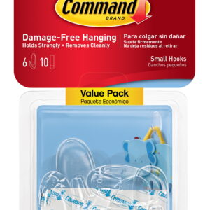 Command Clear Mini Wall Hooks let you decorate and organize how you want, when you want, during the holidays without damaging your walls and surfaces. These Command Clear Hooks blend in seamlessly to walls and surfaces so you can showcase your holiday decor, not how it’s hung. A great home improvement item this Christmas season, these wall hooks stick on a variety of smooth surfaces without leaving holes, marks or sticky residue. Hang your favorite Christmas decorations, garlands and ornaments on these Christmas hooks or use them as stocking hooks to create a festive winter wonderland that will delight your holiday guests. Or use them as Christmas light clips to hang colorful Christmas lights and the cables and cords of your Christmas tree. Simply mount these no tools wall adhesive hooks on painted walls, finished wood, painted concrete cinder blocks, laminate, glass, metal and tiles and enjoy the damage free hanging of your favorite holiday decorations and organizers. Perfect for home renovators and college students, use these wall hooks in your home, office, apartment or dorm room to elevate the appearance of your living or working space this Christmas without tools. Directions are included; follow the directions closely to use the wall hooks as intended. Prior to mounting, clean the surface with rubbing alcohol to allow the wall hangers to maintain a strong bond with the surface. Lightly hold the top of the wall hooks and slowly pull them straight down towards the floor to remove and prevent surface damage. A clever decorating and organizing solution that doesn’t damage surfaces, these miniature wall hooks will help you fearlessly change your space this holiday season. One package contains 6 clear wall hooks and 8 small Command Strips. Each single wall hook can hold up to 0.5 pounds. Decorate, organize and celebrate damage free with Command.