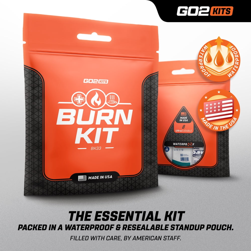 This USA Made Burn Kit is an essential for the home. It has everything invcluding burn gel, gauze and dressings ensure everyone in your family is protected in case of an accident. Kit provides immediate pain relief by covering the exposed nerve endings and rapidly cooling and soothing the burn while drawing the heat out of the wound to stop burn progression. Must have for home, restaurants, camping or car. Each kit includes: 2 – 4” x 4” Burn Dressings, 2 Packets of Burn Cream (0.9g), 1-2” Roller Gauze, 1 Safe Bag and Twist Tie, 2 Pads 3” x 4” Non-Stick, 1 Burn Instruction Sheet, 2 Cleansing Wipes and 1 Pair Nitrile Gloves. Our kits will have you prepared for any potential emergency at home, in the office or on the go. The essential first aid supplies are ideal to treat pain and swelling, as well as cuts, scrapes, and burns. The resealable pouch keeps the first aid supplies organized and easy to locate. This compact kit fits nicely into a backpack, vehicle or drawer. This emergency burn kit is a must have for travel and for home & office. Also available in bulk quantities with quick turnaround time, since we are a US based company in Keene, New Hampshire.