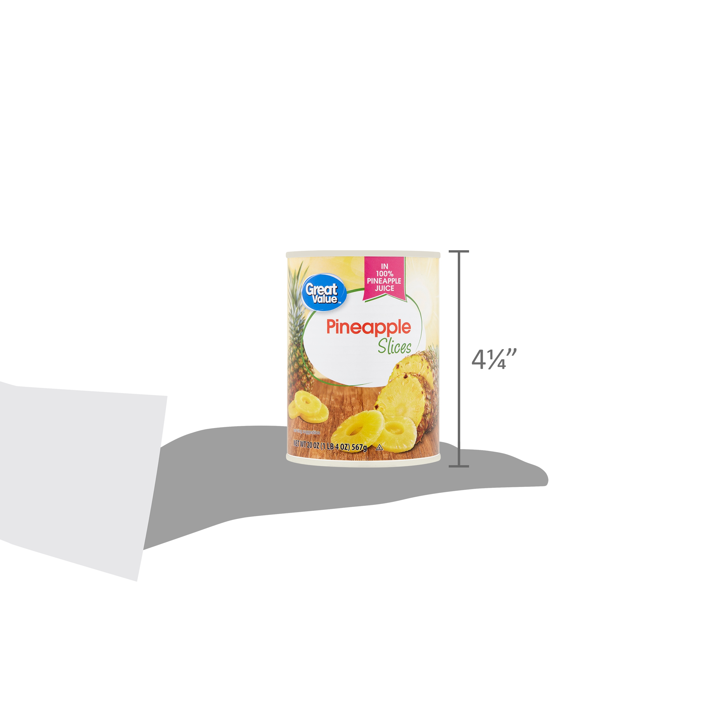 Enjoy a healthy snack anytime with Great Value Pineapple Chunks. Our pineapple chunks are served in 100% pineapple juice with no added sugars, making them a healthier option than fruit soaked in heavy syrup. One serving will only set you back 70 calories, and with no saturated fat or cholesterol, you know you’re making a wholesome choice. Just pull the easy-open tab, no can opener required, and enjoy! Great Value Pineapple Chunks are a tasty treat you’ll look forward to every day.