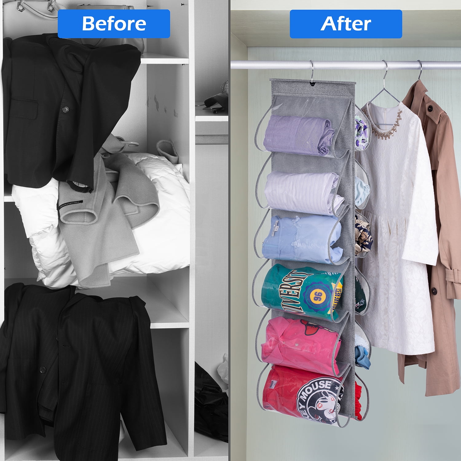 This easy to use hanging organizer which designs for closet and can storage shoe or purse without taking much space. It’s consist of a swivel metal hanger that can be rotated to any direction you want. Makes pick up your items in dim closet with great ease. Dual sided hanging closet shoe organizer has 6 large transparent PVC pockets in each side, fits almost any type of footwear. Including tennis shoes, sneakers, slippers, flip flops, women high heels, walking shoes etc. Prevent them from scuffing and keep them in fresh condition. The size of shoe holder also fit well for purses, clothes, even handbags. Try MISSLO 12 Clear Pockets Hanging Shoe Organizer for Closet Rotating Shoe Hanger Hanging Shoe Shelves Dual Sided Storage Holder, Gray. making the experience of finding shoes much simpler.