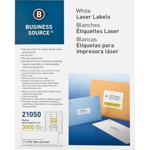 Pen + Gear Laser/Inkjet White Address Labels, Permanent Adhesive, 1" x 2-5/8", 30 Labels per Sheet, 1500 Labels