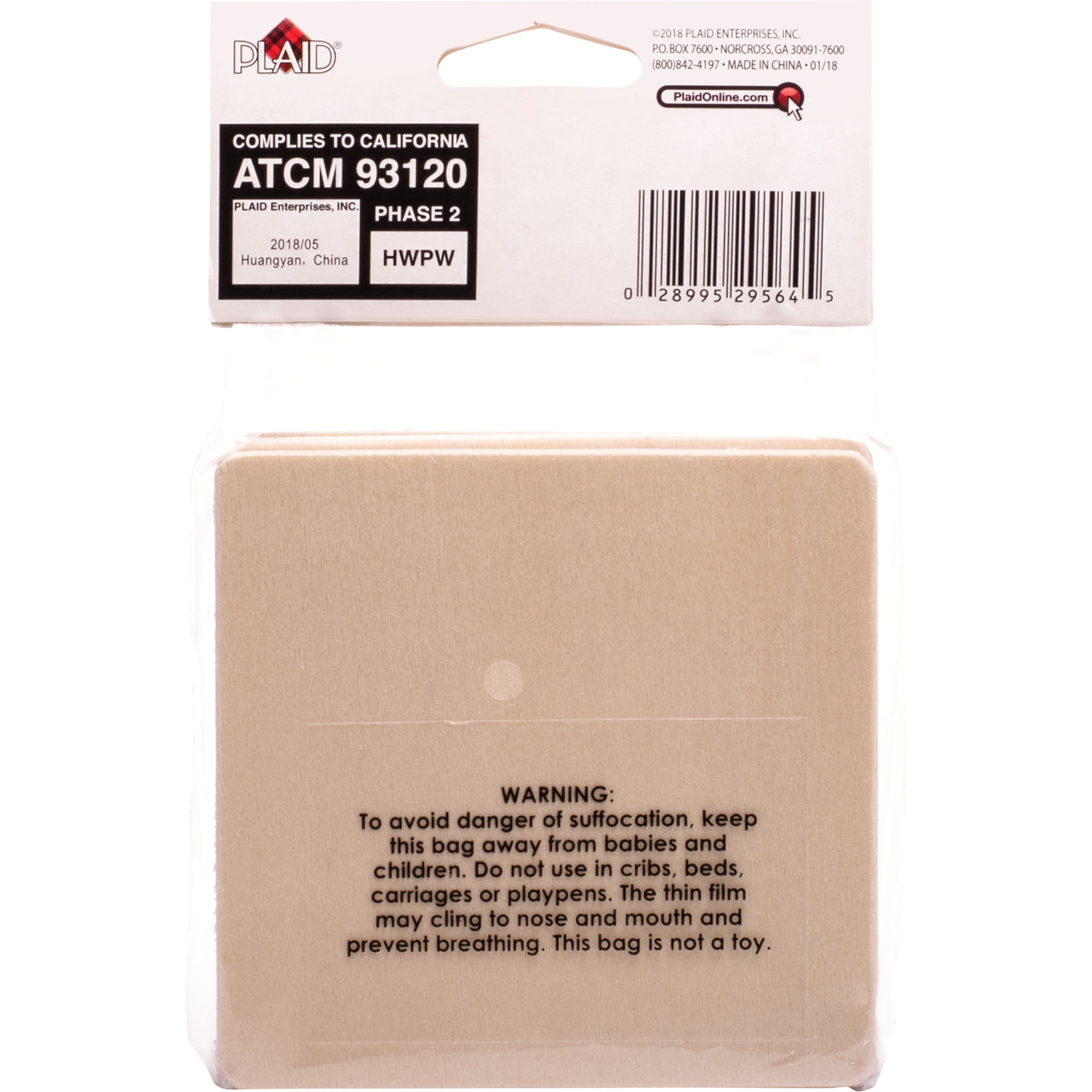Plaid 29564E Unpainted Wood Surface, Square Coasters Set, 4 Piece, 4" x 4":
