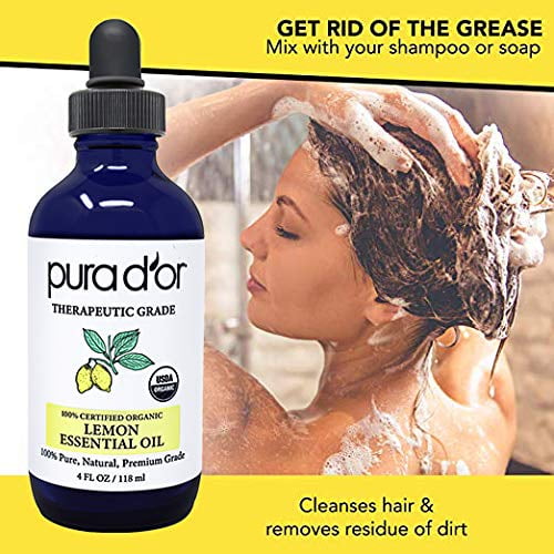- GET RID OF THE GREASE: Greasy hair or hands, Lemon Essential Oil can work its magic with your shampoo or soap. It cleanses hair and removes residue of dirt to stop the buildup that causes grease.