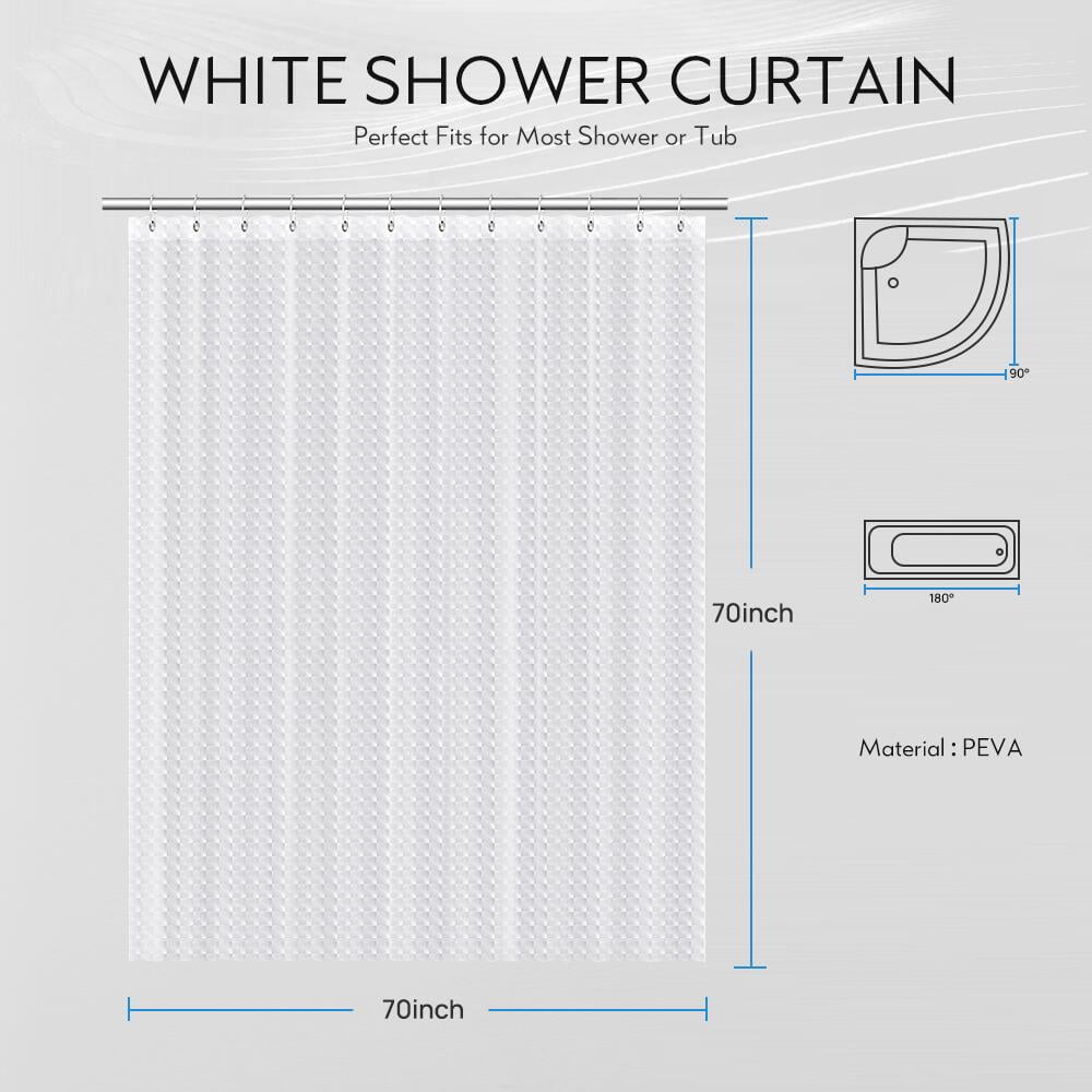 Kenney® Medium Weight PEVA Shower Curtain Liner with Pockets, 70′ W x 72′ H, White