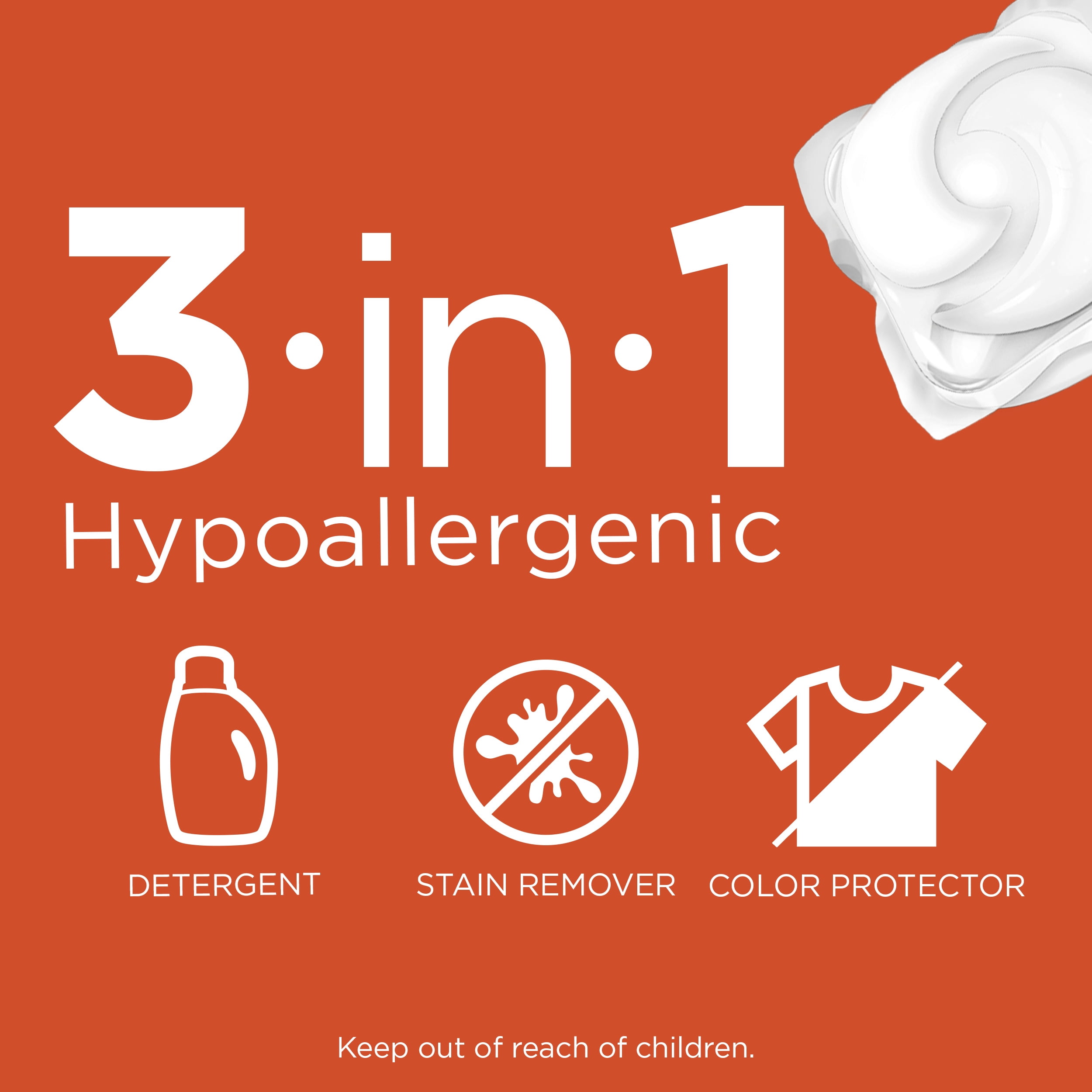 Taking care of sensitive skin doesn’t have to be hard. Each individual pac of Tide PODS Free and Gentle HE Turbo laundry detergent cleans, fights stains, brightens fabrics and is specially designed free of dyes and perfumes. Simply put in one pac for most loads, but use two pacs for large loads and three pacs for extra-large loads. For a simple, worry-free laundry experience that’s gentle on skin, Tide PODS Free and Gentle laundry detergent will keep your family looking and feeling great. It outperformed the leading free detergent on 10 different stains.
