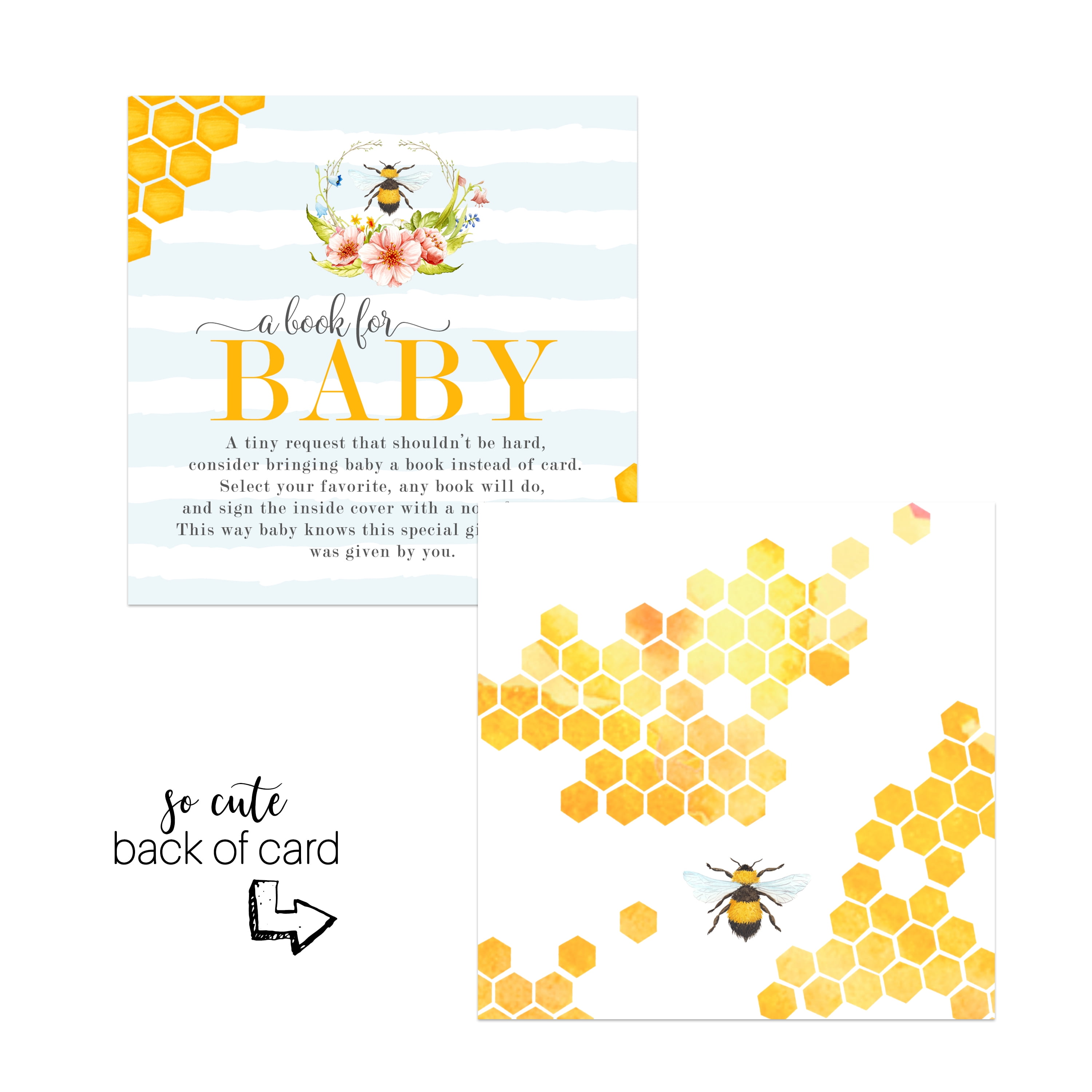 Mama to Bee Bring a Book for Baby Shower Invitation Insert Card Pack of 25 Raffle Game Ideas Gender Reveal Bumblebee Floral Theme Boy or Girl (4 x 4 Size) Paper Clever Party