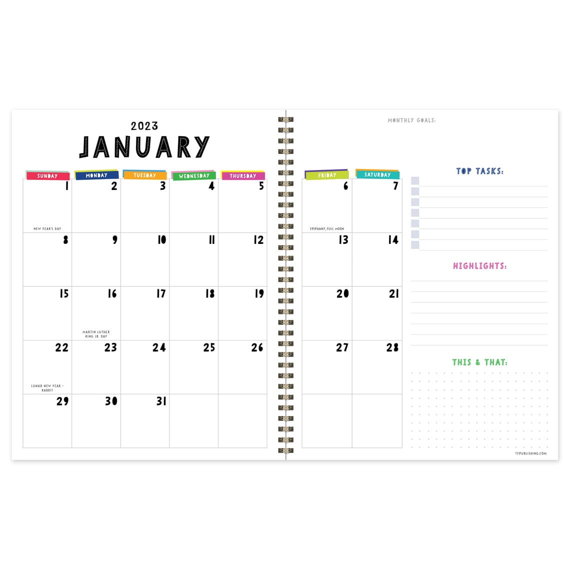 Pen + Gear Large Weekly/Monthly Planner, Rainbow Poly Cover, April 2022 – June 2023, Twin Wire Bound