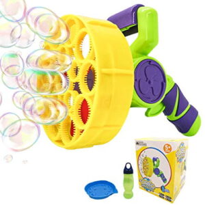 WhizBuilders Bubble Machine Gun for Kids and Toddlers, Outdoor Summer Pool Giant Water Bubbles Wand Blower Toys Gift for Toddler with Solution Refill Automatic Big Large Bubble Maker Baby Toy Guns