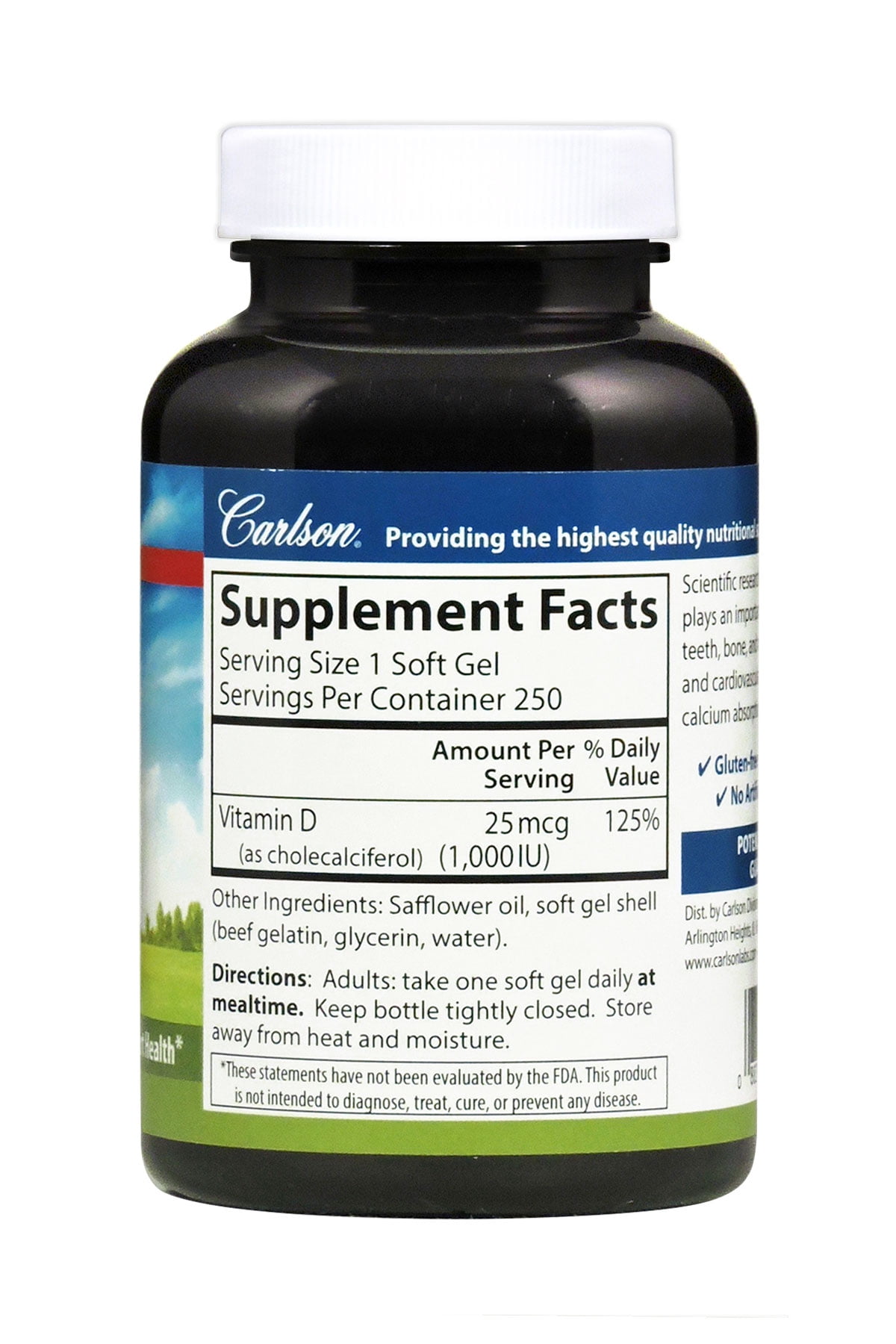 Carlson Vitamin D3 Softgels, 1000 IU, 250 Ct
